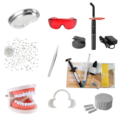 Découvrez le kit complet de strass dentaire, idéal pour débutants et professionnels. Il contient tout le nécessaire : lampe de polymérisation, dentier d’entraînement, strass, accessoires et protections pour des poses précises et sécurisées.